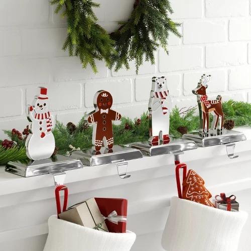 ที่วางถุงเท้ายาวแบบเหล็กสุดหรูสำหรับวางของตกแต่งเทศกาลคริสต์มาสทำจากโลหะสำหรับวางบนเตาผิงในวันหยุด