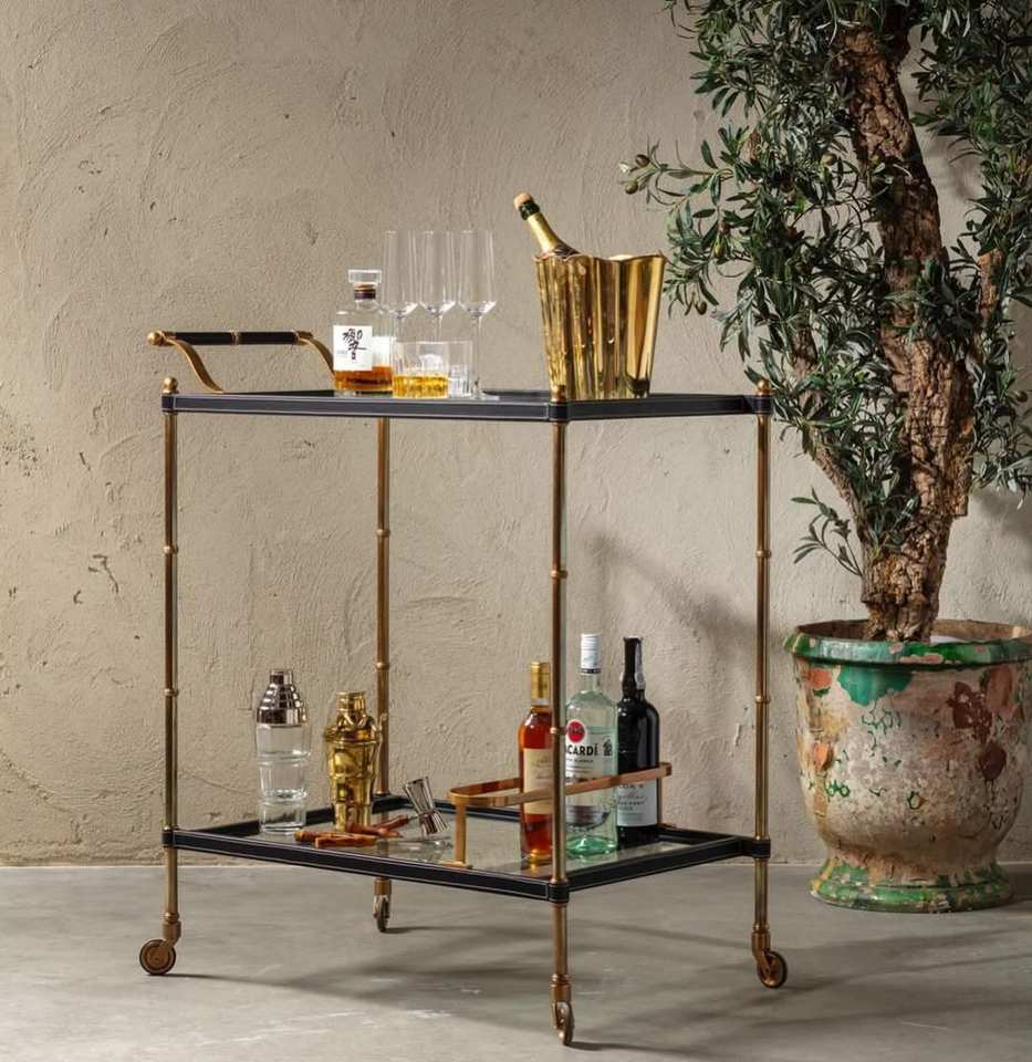 รถเข็นเสิร์ฟเหล็กหรูหราเคลือบทองพร้อมชั้นวางแก้วหลายระดับสำหรับตกแต่งบ้าน ห้องครัว ห้องรับประทานอาหาร
