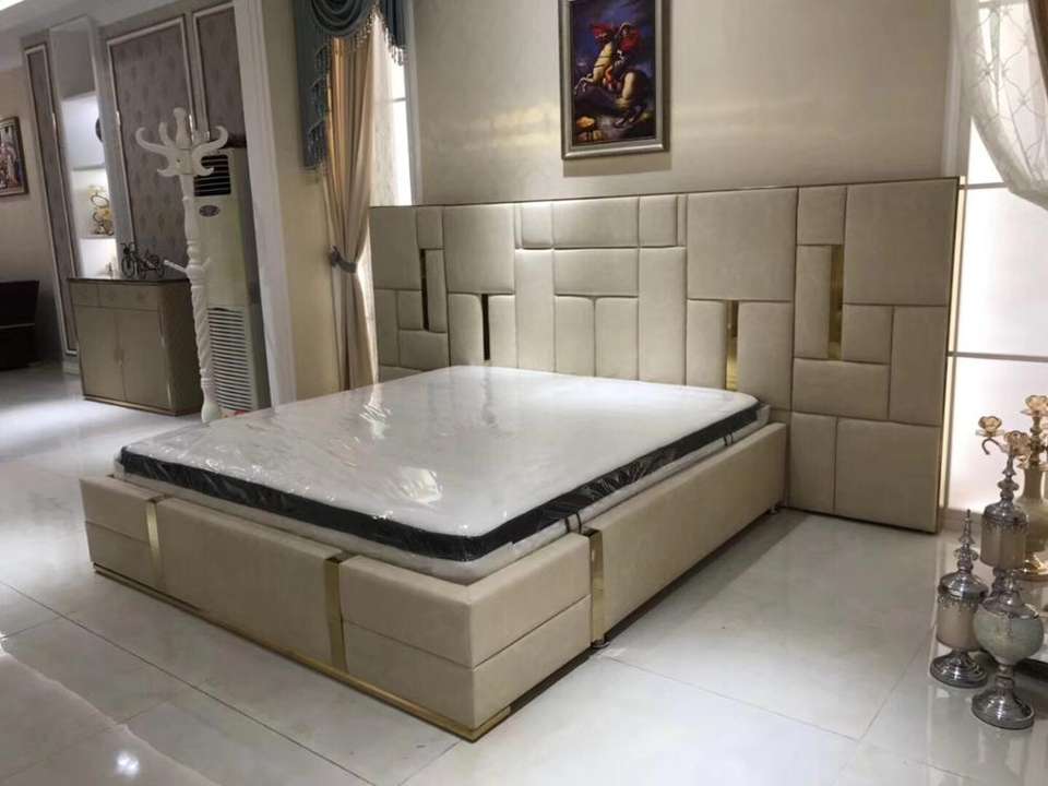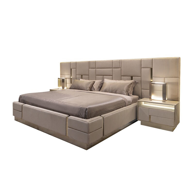 ชุดห้องนอนหรูหราอิตาลีขนาดคิงไซส์โมเดิร์นอิตาลีสแตนเลสเตียงคู่ออกแบบชุดเฟอร์นิเจอร์หนังหรูหราบ้าน
