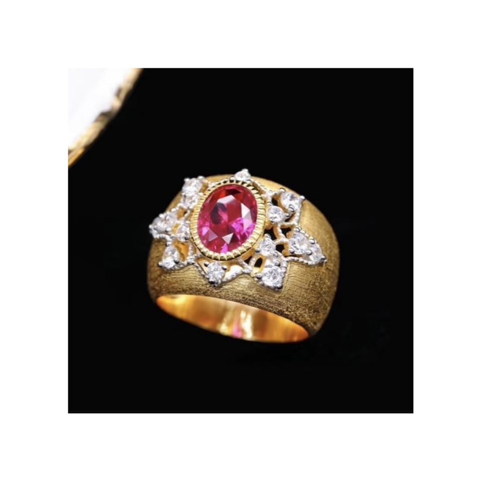 แหวนชุบทอง18K สำหรับผู้หญิงและผู้ชายงานหัตถกรรมจากอิตาลีทำจากทับทิมจำลองรูปทรงเพชรสดใส