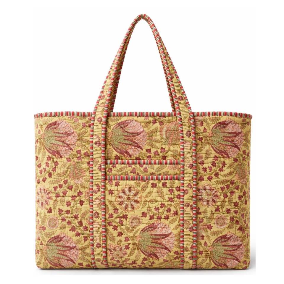 Luxury Jaipur Handmade Block Printed Boxy Tote Bags Zipper Closure Utility Pockets All Season Daily Use Machine Washable