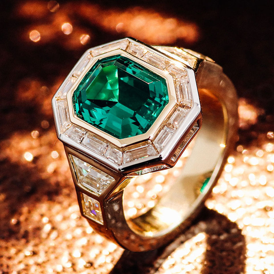 เลือกเลยColor: แหวนทอง 10K ประดับมรกตสังเคราะห์
