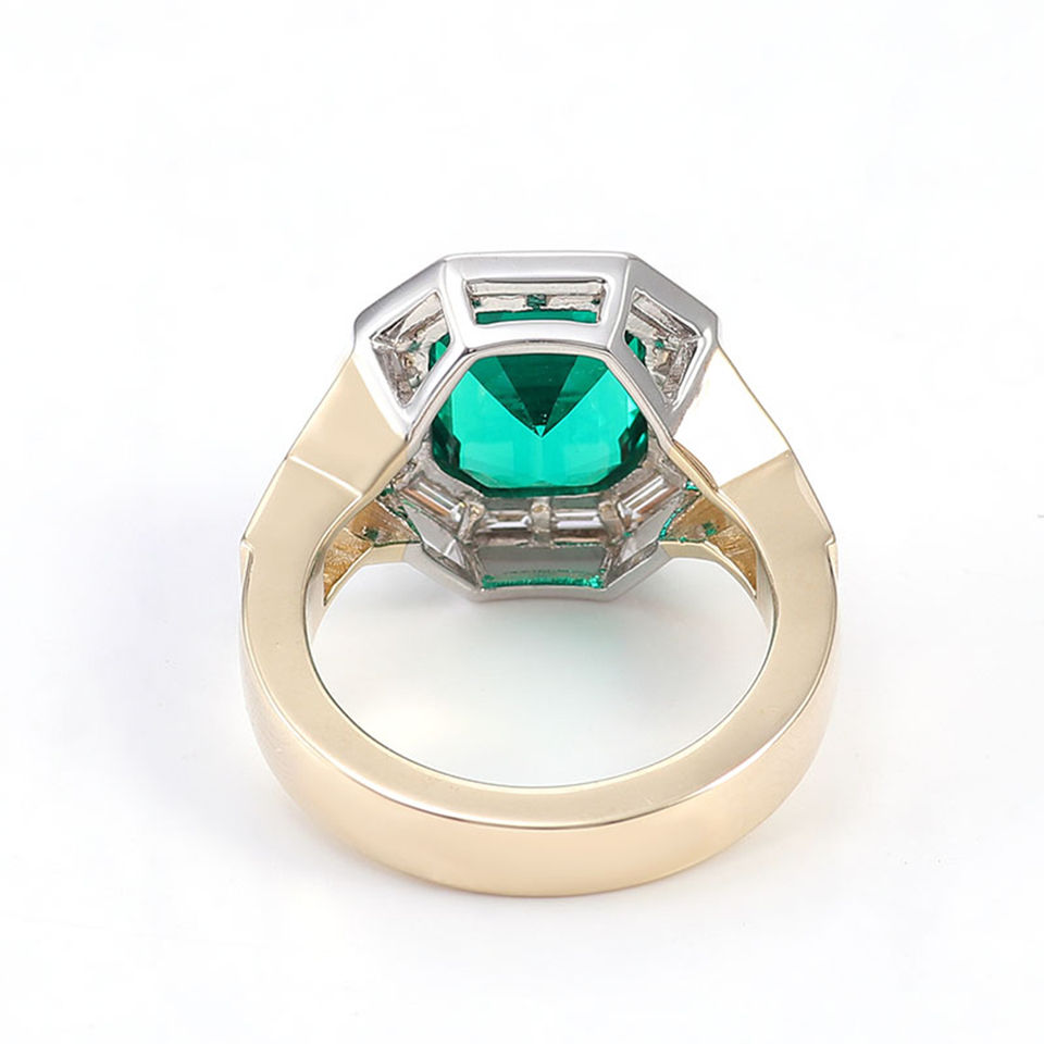 แหวนหมั้นทองคำแท้ 10K ประดับมรกตสังเคราะห์ ดีไซน์วินเทจ แหวนแต่งงานมรกตสังเคราะห์ทรงรัศมี