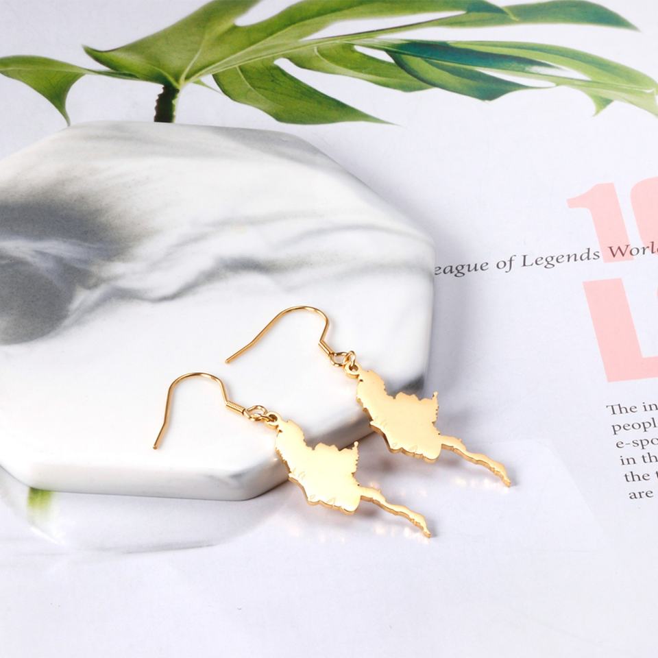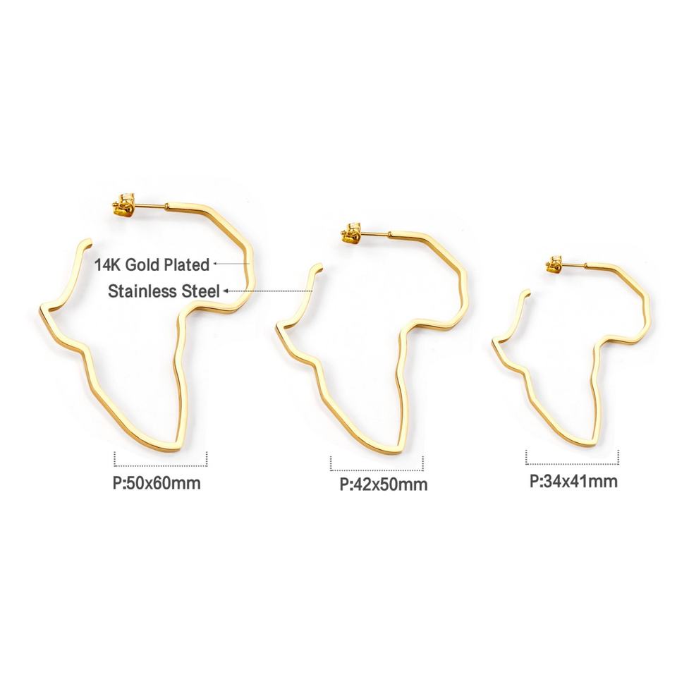 เครื่องประดับหรูหรา ต่างหูห่วงสแตนเลสชุบทอง 14k ดีไซน์ใหญ่พิเศษ รูปทรงแผนที่แอฟริกา