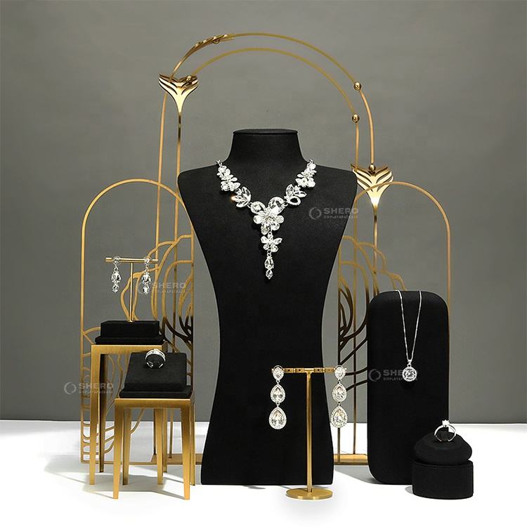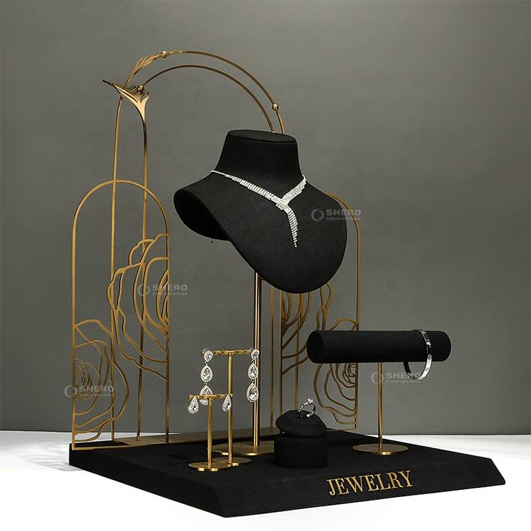 แท่นโชว์เครื่องประดับสุดหรูที่วางสร้อยคอโลหะสีทองสำหรับร้านค้าปลีกบูติก