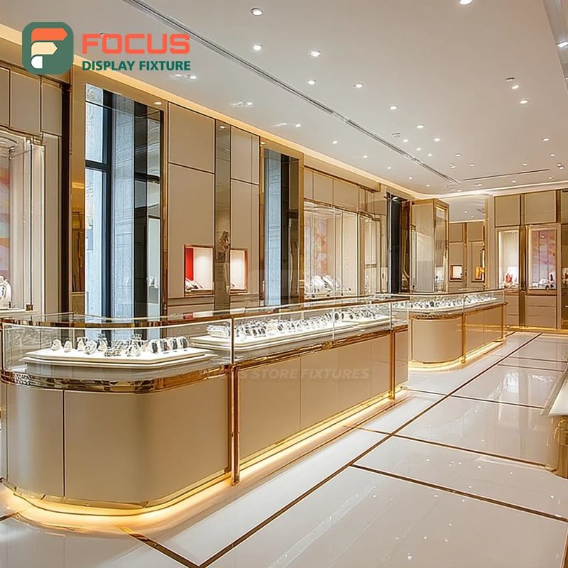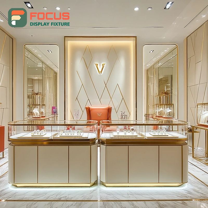 ระบบจัดแสดงเครื่องประดับหรูหรา แผงกระจกนิรภัย เคาน์เตอร์แสดงสินค้าในห้างสรรพสินค้า