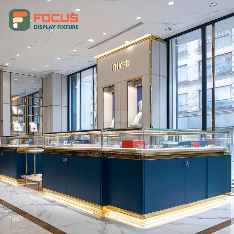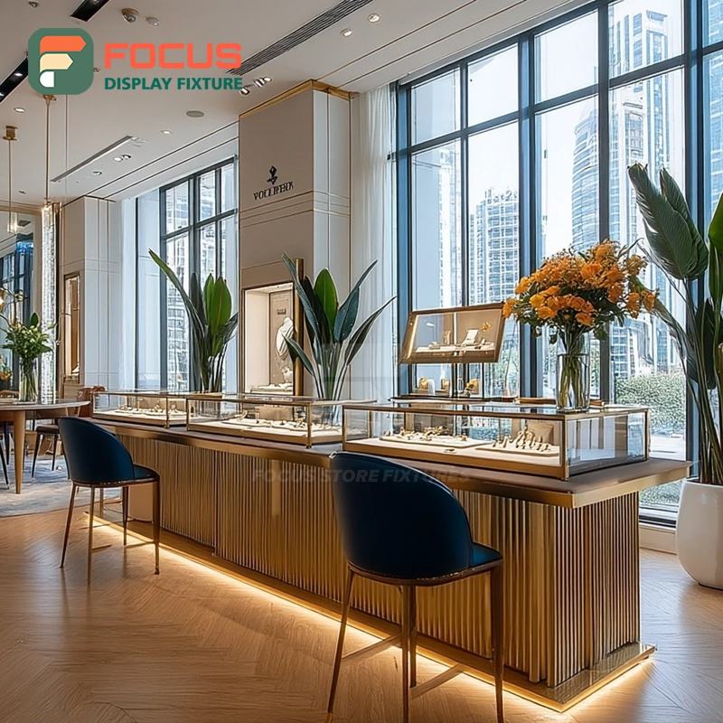 ระบบตู้โชว์เครื่องประดับหรูหรา แผงกระจกนิรภัย ตู้โชว์ร้านค้าแบรนด์ดัง
