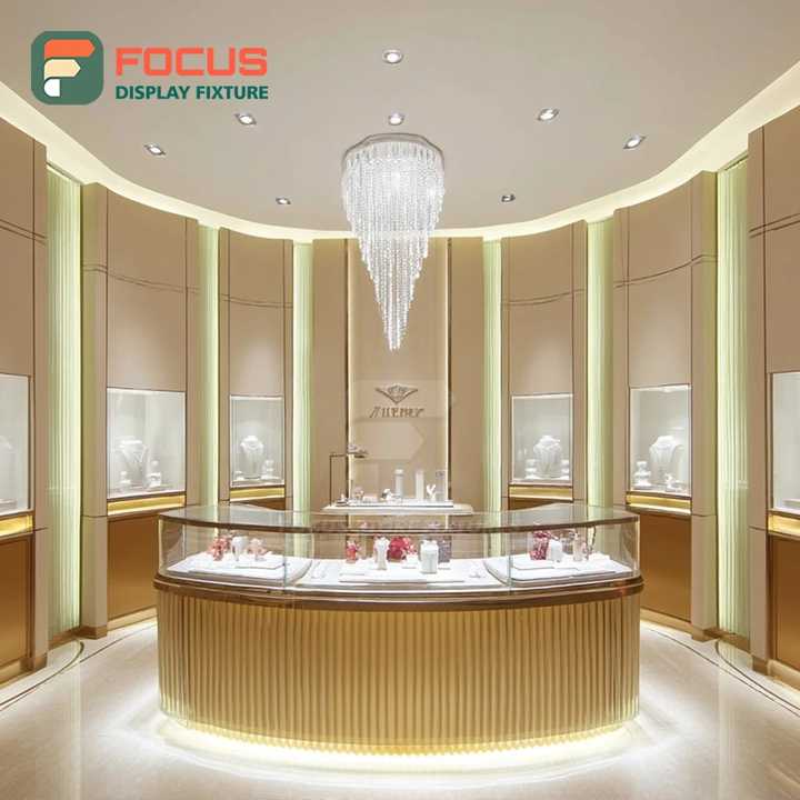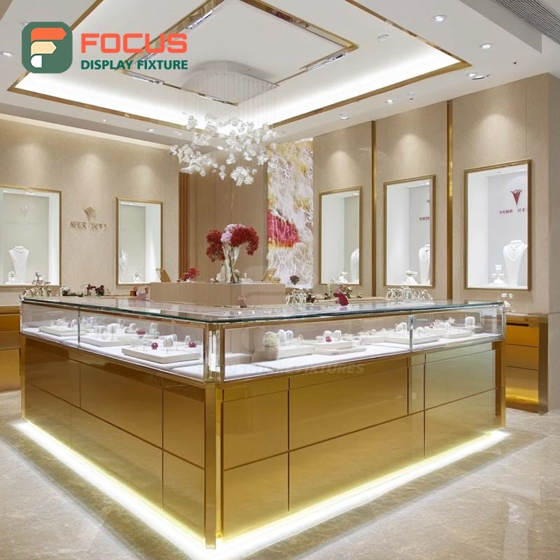 ตู้โชว์สินค้าแบรนด์เนมสำหรับร้านขายเครื่องประดับหรูหราพร้อมกรอบไม้