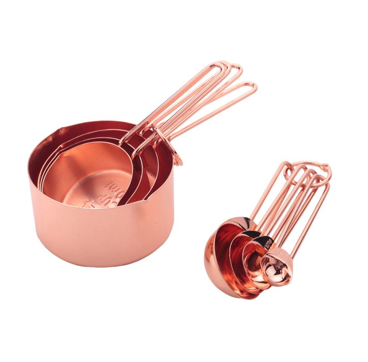 อุปกรณ์ครัวสุดหรู ช้อนตวงทองแดง ถ้วยตวง ด้ามจับคู่ สีโรสโกลด์ งานฝีมือ