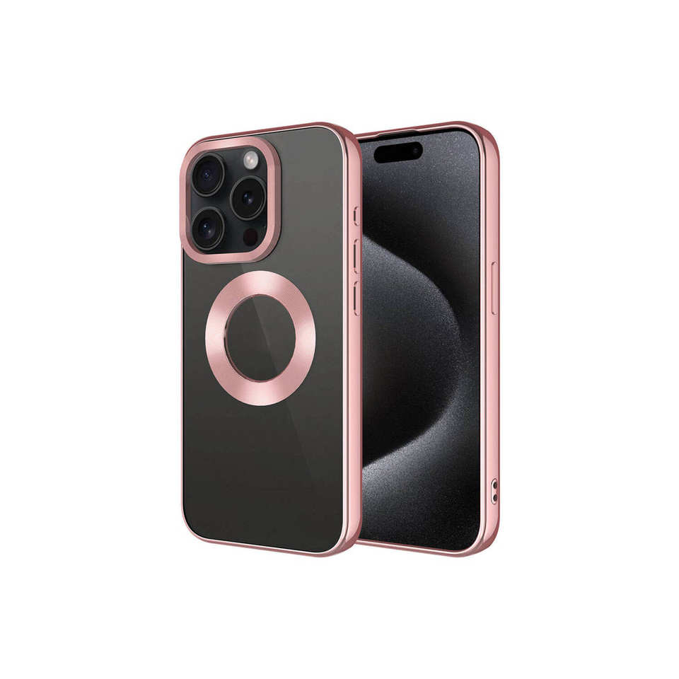 เคส LCKC Omega รุ่นหรู สำหรับ iPhone 15 Pro Max สีโรสโกลด์ ชุบเคลือบด้วยซิลิโคน ป้องกันกล้อง พร้อมช่องเจาะโลโก้ 7 Plus