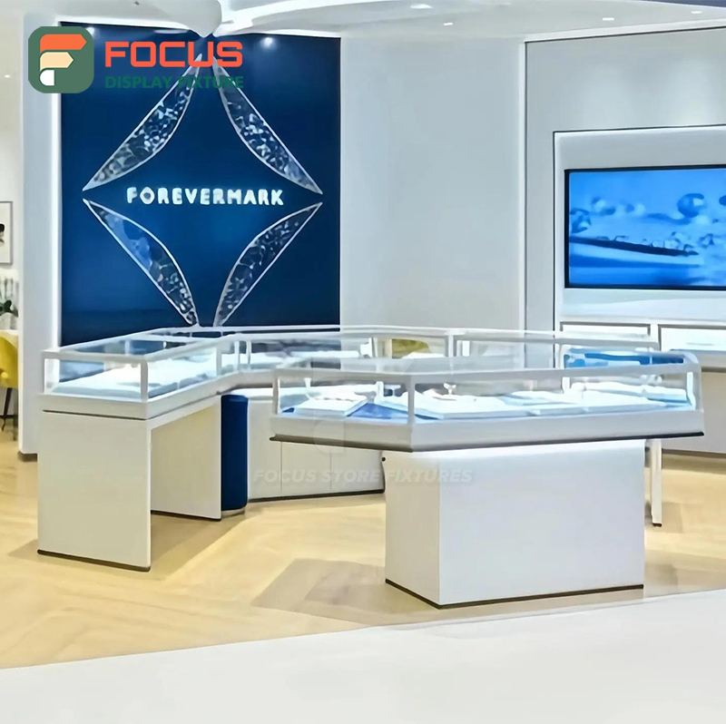 ตู้โชว์กระจกพร้อมไฟ LED หรูหรา สำหรับร้านขายเครื่องประดับ ดีไซน์ทันสมัย วัสดุไม้คุณภาพสูง สำหรับตกแต่งภายในร้าน