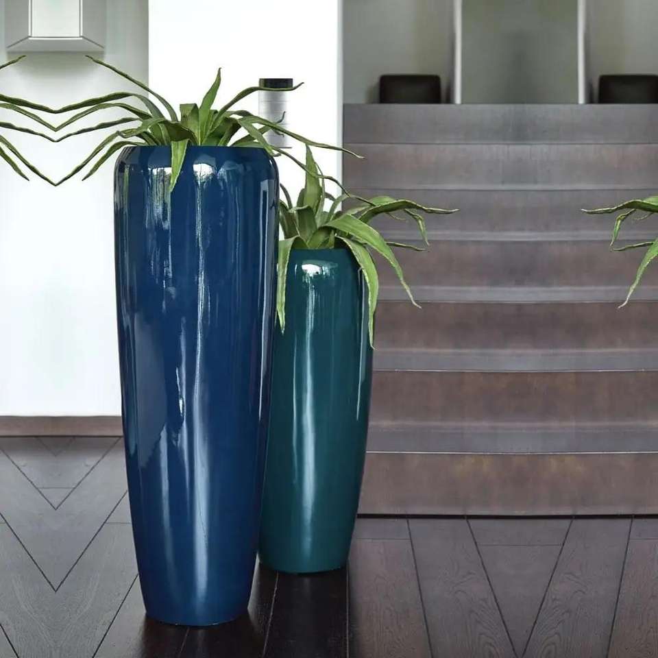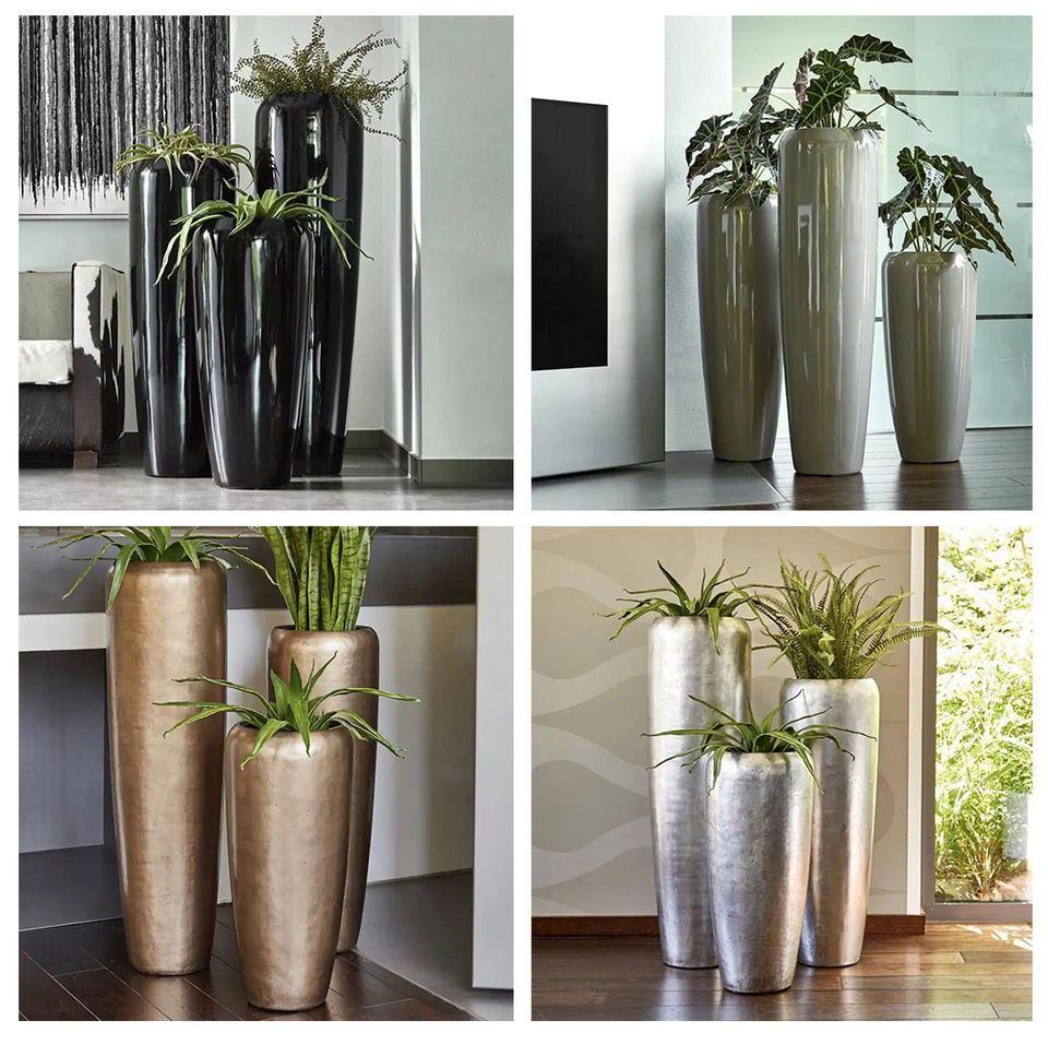 กระถางไฟเบอร์กลาสเคลือบแล็กเกอร์สุดหรูสำหรับปลูกต้นไม้ในร่มกลางแจ้งหม้อตกแต่งที่มีน้ำหนักเบาทนทาน