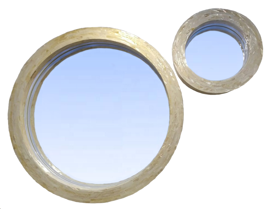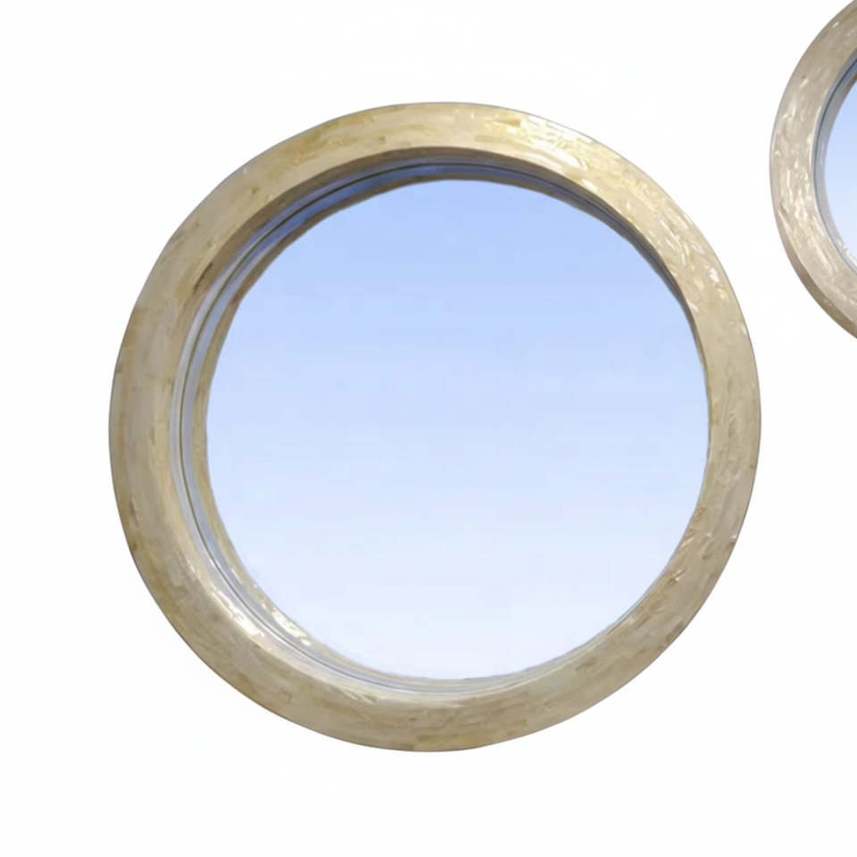กระจกติดผนังทรงกลมลายโมเสค MOP เคลือบเงาอย่างดี สำหรับห้องนั่งเล่น ห้องโถง ห้องน้ำ และโต๊ะเครื่องแป้ง