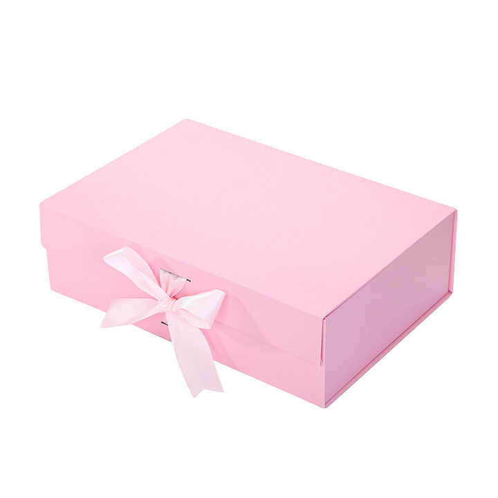 กล่องบรรจุภัณฑ์เสื้อผ้าหรูหราขนาดใหญ่ทำจากกระดาษแข็งพร้อมริบบิ้นผูกปิดแบบกำหนดเองได้