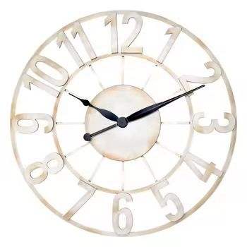 นาฬิกาแขวนผนังโครงกระดูกขนาดใหญ่ ดีไซน์โลหะสีครีมทันสมัย ตัวเลขขนาดใหญ่ เงียบไร้เสียงรบกวน ใช้กลไกควอตซ์ เหมาะสำหรับตกแต่งห้องนั่งเล่นสไตล์ฟาร์มเฮาส์