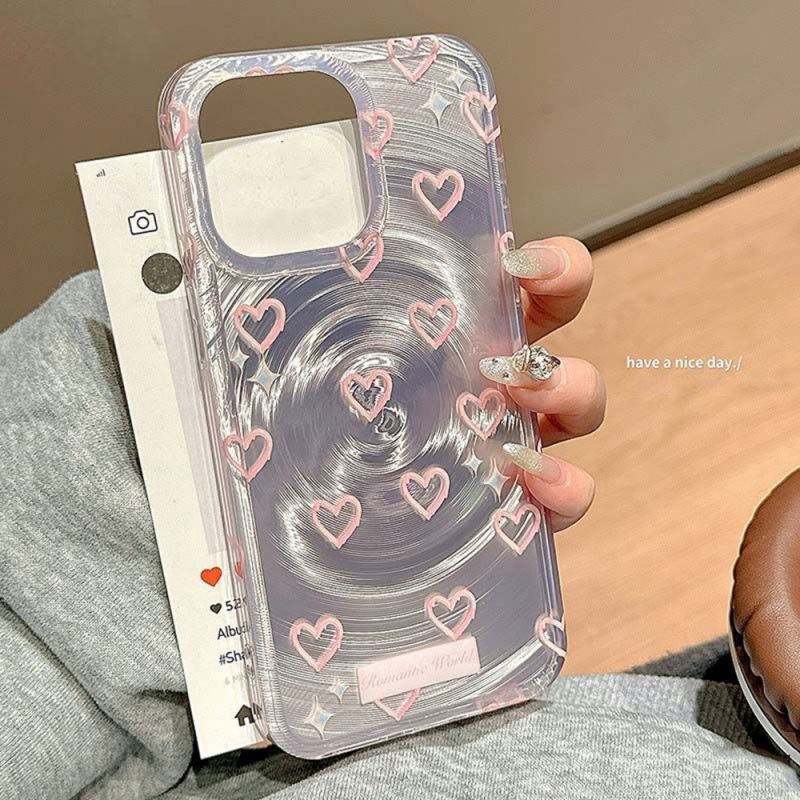 เคสโทรศัพท์ลายเลเซอร์รูปหัวใจสุดหรู สำหรับ iPhone 16 Pro, iPhone 17, 15, 14, 12, 11, 13 Pro Max แบบกันกระแทกแข็งแรง