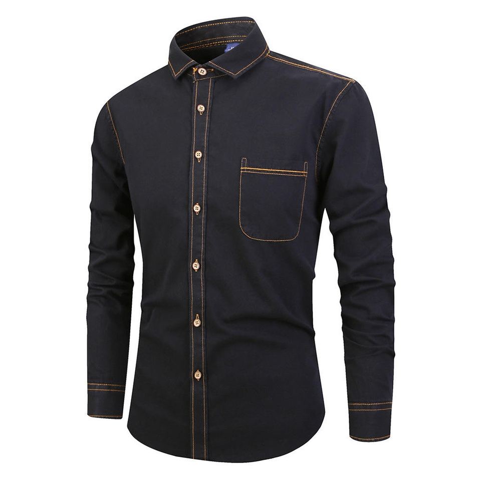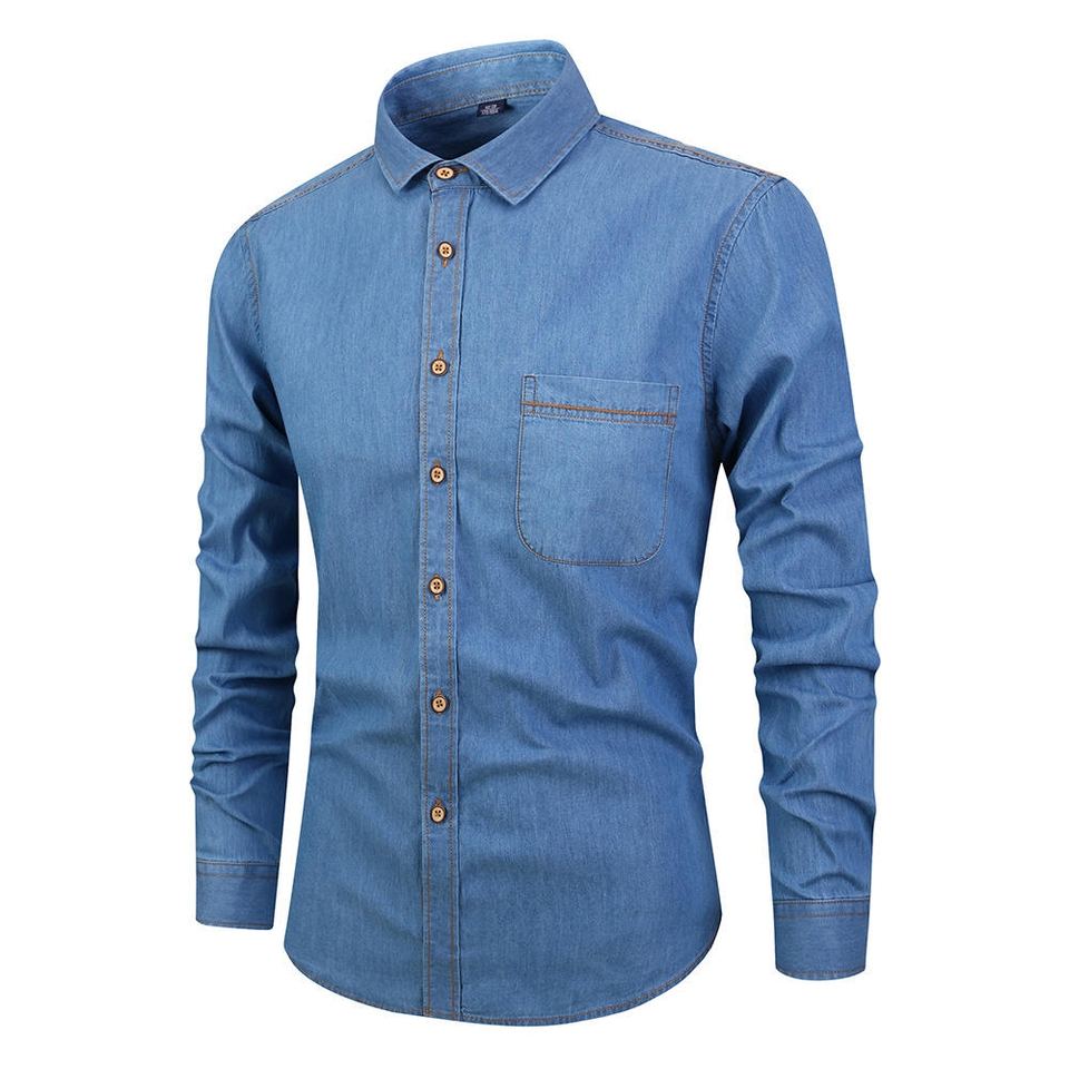 เสื้อเชิ้ตยีนส์ผู้ชายผ้าฝ้ายคุณภาพดีรุ่นล่าสุด ทรงปกติ สีน้ำเงิน ระบายอากาศได้ดี ติดกระดุม สไตล์ลำลอง
