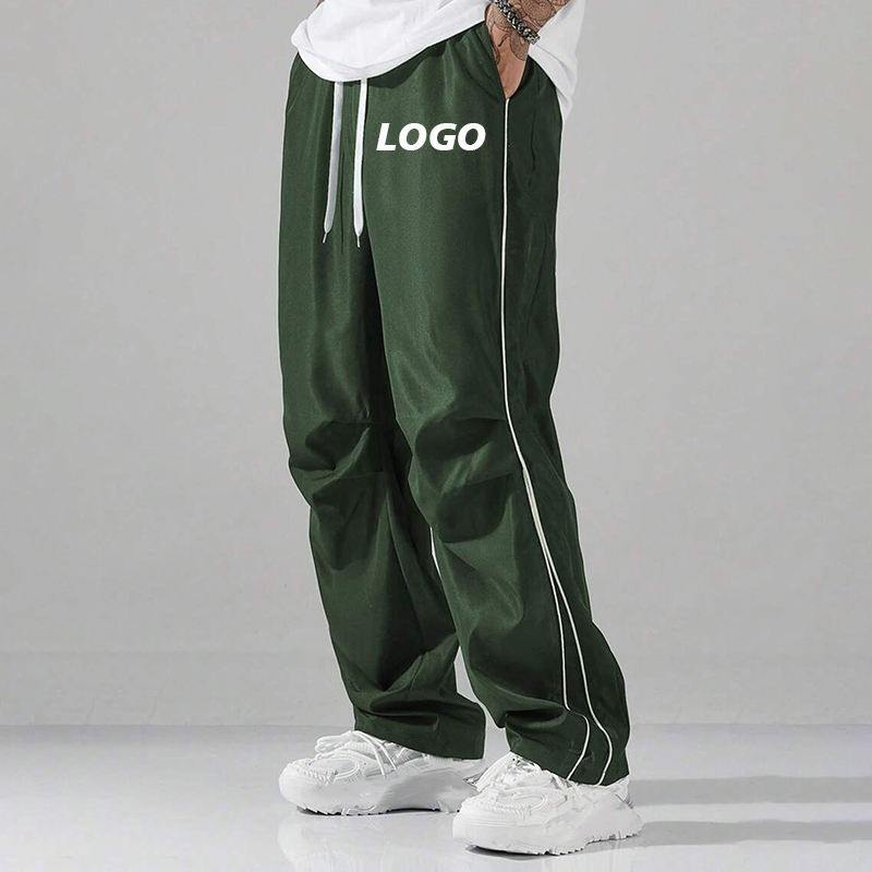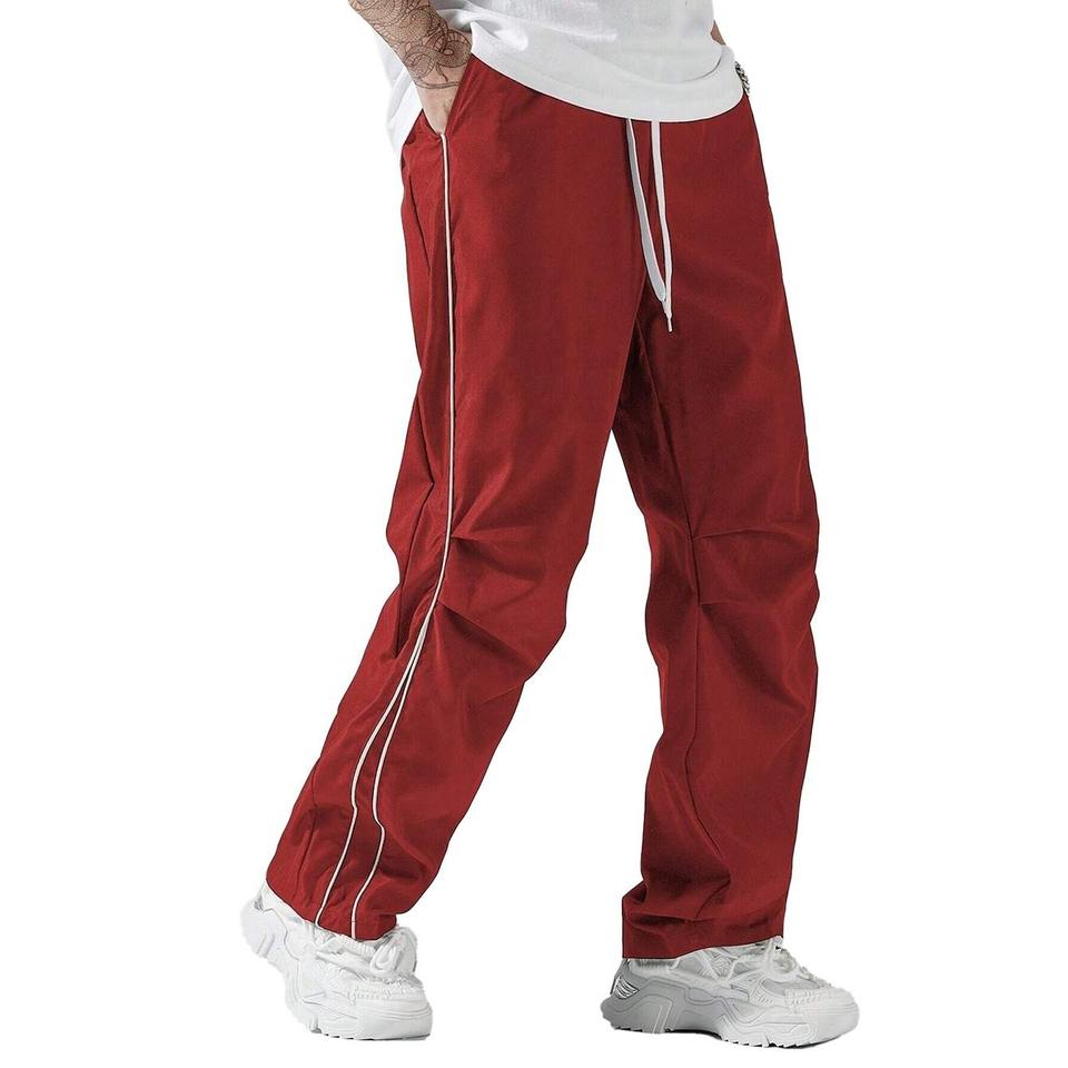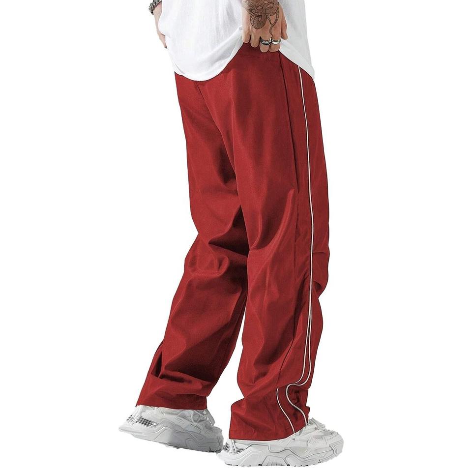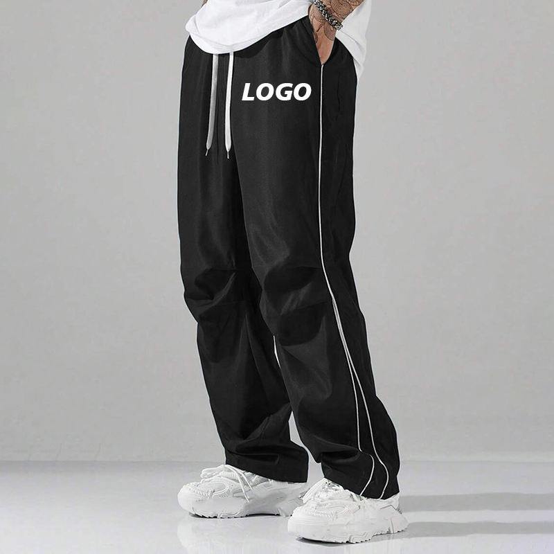 กางเกงวอร์มผ้าไนลอนขาตรงของผู้ชายกางเกงออกกำลังกายทรงหลวมกันน้ำระบายอากาศได้ดีดีไซน์ใหม่ล่าสุดหรูหรา