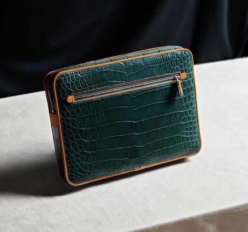 กระเป๋าคลัทช์หนังจระเข้หรูฉลองครบรอบปีของผู้ชายกระเป๋าคลัทช์ทำด้วยมือชั้นสูงที่ทันสมัย