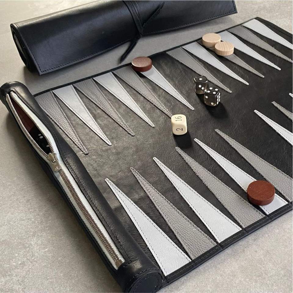 ชุดแบ็คแกมมอนหนังหรูหราแบบม้วนเก็บได้ พกพาสะดวกสำหรับการเดินทาง พร้อมช่องซิป ลูกเต๋าและตัวหมากคุณภาพพรีเมียม เหมาะสำหรับเป็นของขวัญ