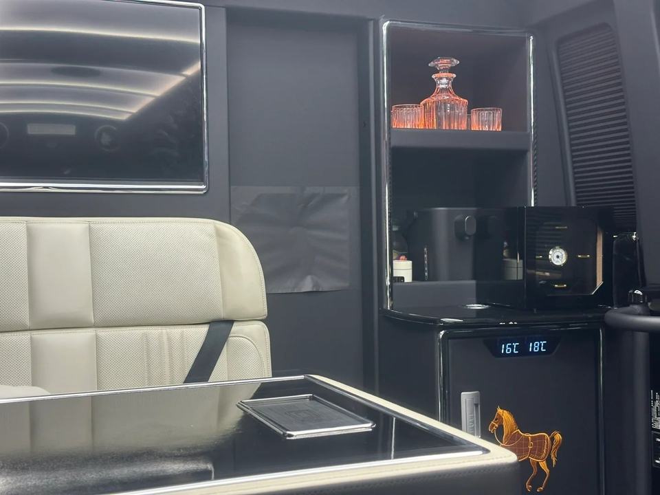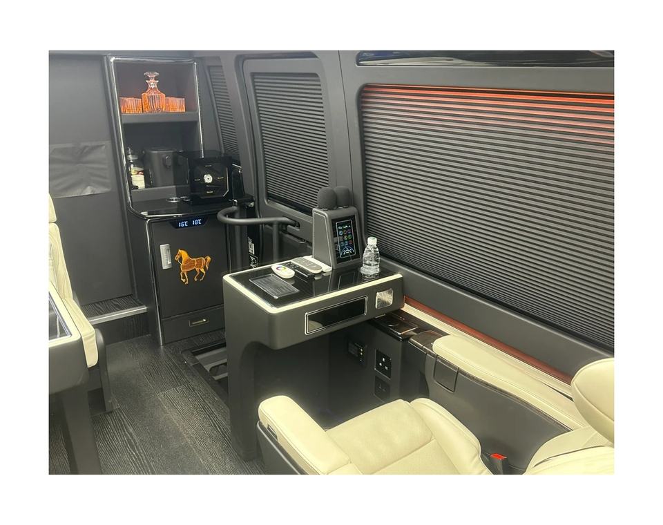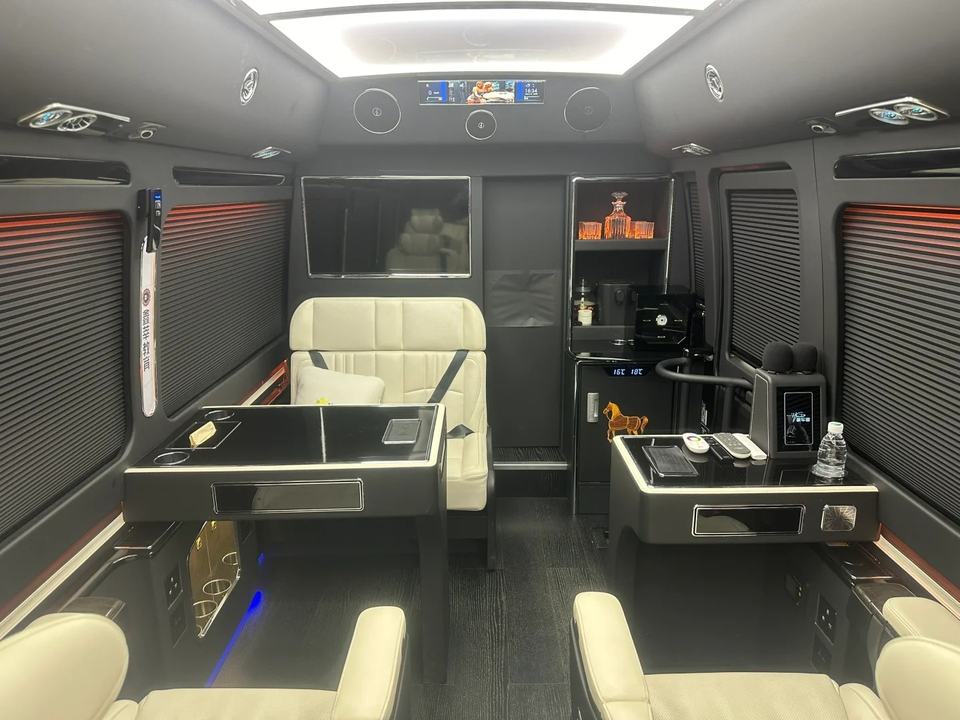 ชุดอุปกรณ์ตกแต่งภายในรถตู้หนังหรูหรา พร้อมเคาน์เตอร์บาร์ สำหรับตกแต่งภายในรถยนต์โตโยต้าโคสเตอร์