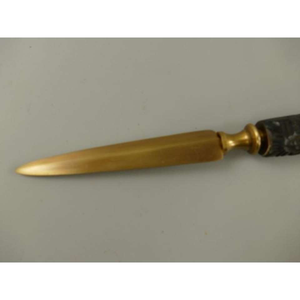 ที่เปิดจดหมายหรูหรา ด้ามจับทำจากเขาสัตว์ อุปกรณ์สำนักงาน ทองเหลืองโบราณ ของขวัญสไตล์ทะเล ราคาถูก