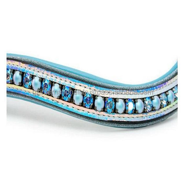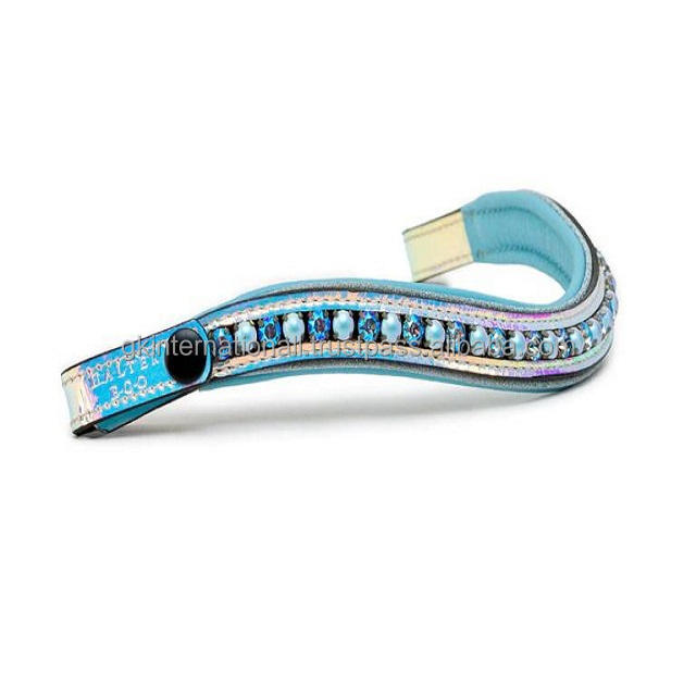 กำไลหนังรูปม้าประดับมุกสีฟ้าอ่อนสุดหรูและไพลินประดับขนาดใหญ่แวววาวแวววาวแบบหนัง