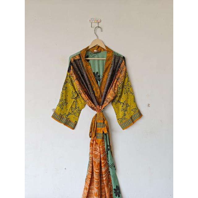ชุดคลุมผ้าไหมรีไซเคิลน้ำหนักเบาหรูหราชุดชายหาดโบฮีเมียนฤดูร้อน/ฤดูใบไม้ผลิเป็นของขวัญที่คลุมบิกินี่สำหรับสไตล์กิโมโนของเธอ