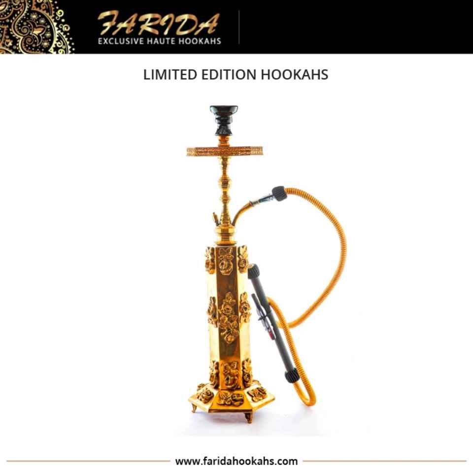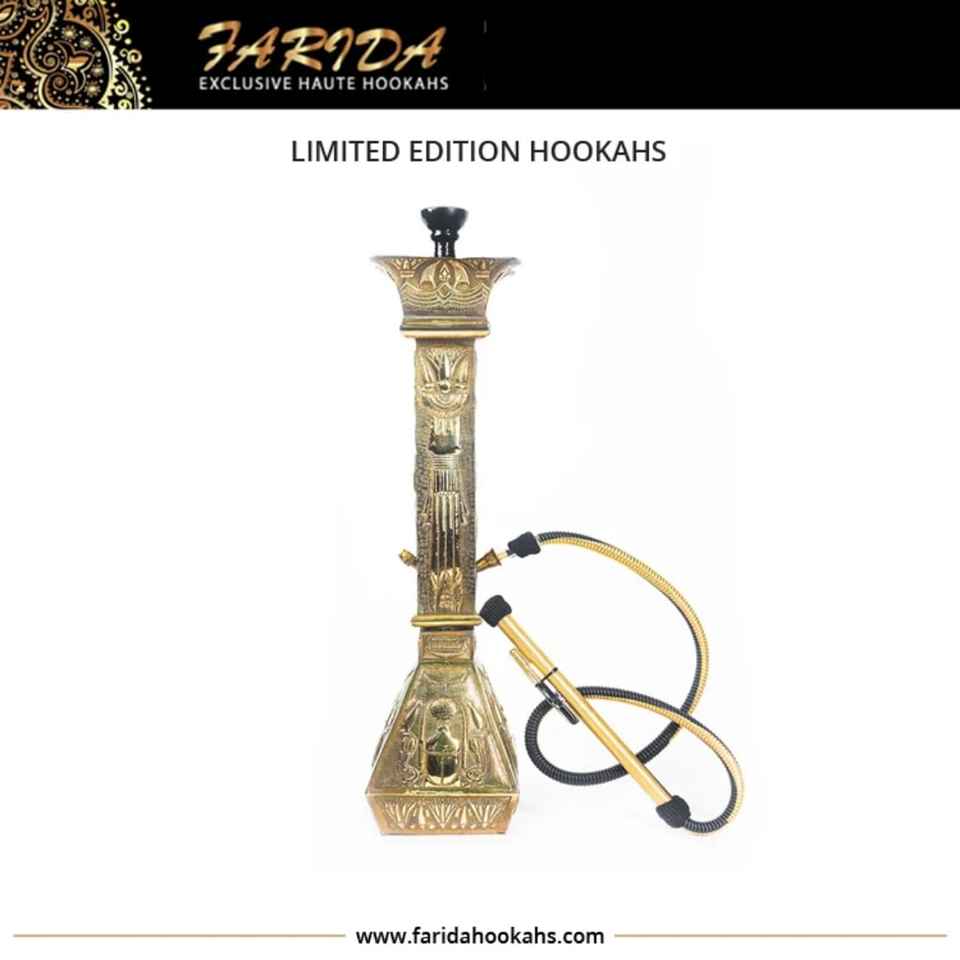 Farida hookahs ทรงสูงแบบพิเศษ, รุ่นลิมิตเต็ดหรูหราทำจากทองเหลืองทุบกระจกจอแสดงผลการใช้งานชิชาคาเฟ่แบบตรงบรรจุกล่อง