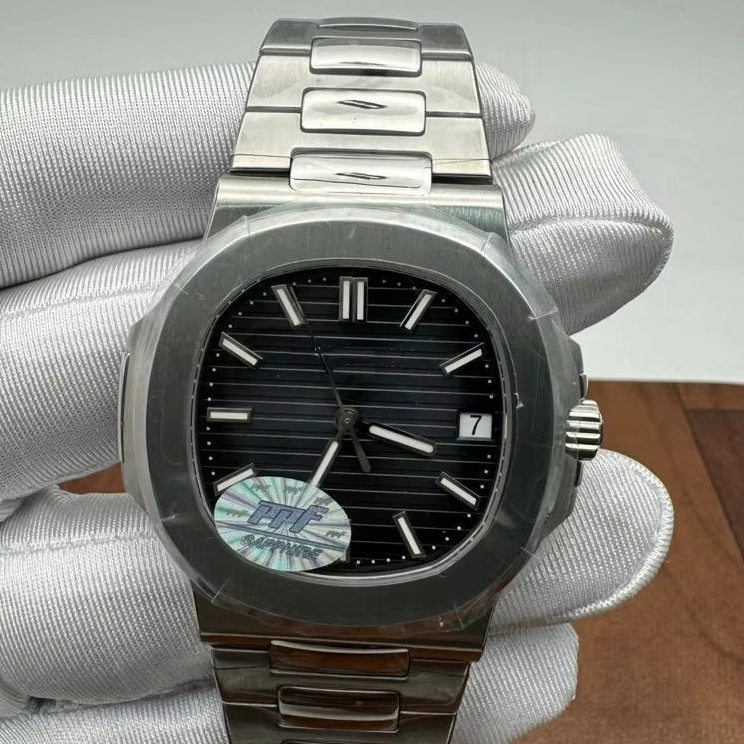 นาฬิกาอัตโนมัติสแตนเลสสตีลฮิปฮอป รุ่นลิมิเต็ดอิดิชั่นสุดหรู หน้าปัดสีน้ำเงินดำแนวนอน แสดงวันที่ สายแบบรวม ETA