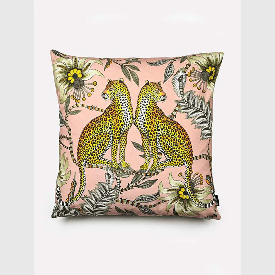 ปลอกหมอนอิงผ้าลินินทอลายเสือดาว ลายพืชพรรณ รักษ์โลก ยั่งยืน ตกแต่งสไตล์ทรอปิคอล ลายป่าดงดิบ