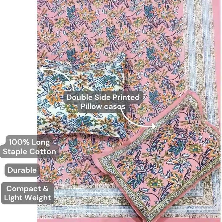 ผ้าปูที่นอนผ้าฝ้ายพรีเมี่ยมพิมพ์ลายบล็อกมือ