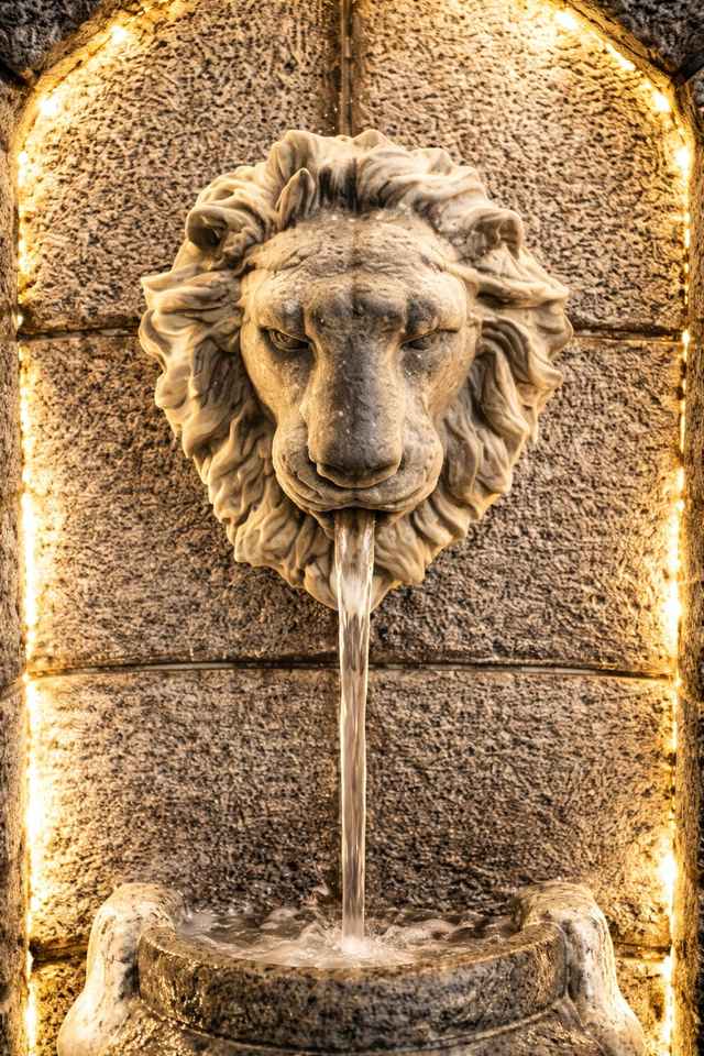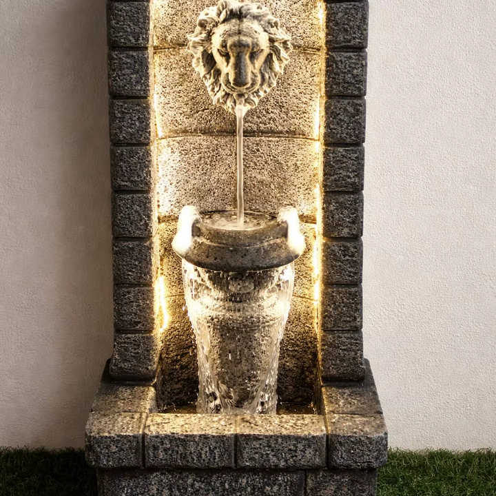 น้ำพุหัวสิงโตหรูหรา รุ่นนิววิชั่น | น้ำพุไฟเบอร์กลาสเรืองแสงกลางแจ้ง | น้ำพุสวนศิลป์พร้อมไฟ LED ตั้งพื้น