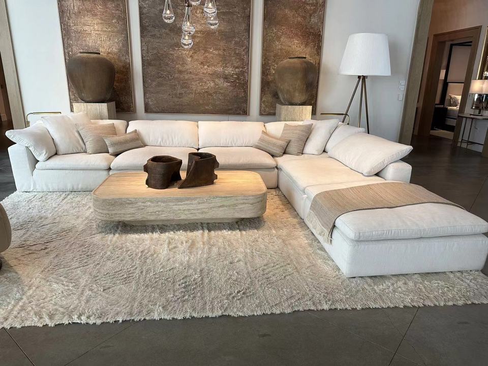 ชุดเฟอร์นิเจอร์ห้องนั่งเล่นสุดหรู โซฟาอาร์มแชร์ในร่มระดับไฮเอนด์พร้อมโต๊ะกลางเข้าชุด ชุดโซฟาแบบแยกส่วนหุ้มเบาะพรีเมียม ดีไซน์ทันสมัย