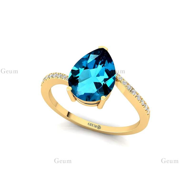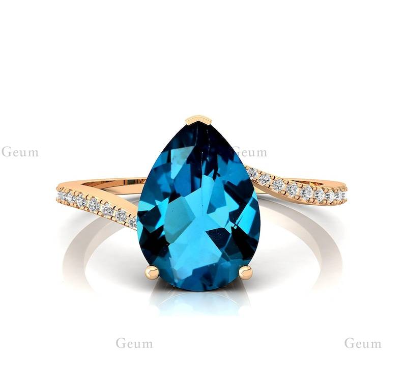 แหวนทองแท้14K สำหรับงานแต่งงานบุษราคัมสีฟ้าสไตล์ลอนดอนขายตรงขนาดตามสั่ง