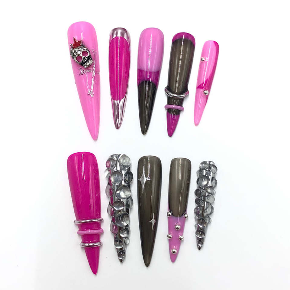 ชุดตะไบเล็บยาวสุดหรูสีชมพูกุหลาบผสมเพชรสีดำเก๋ไก๋ออร่าครึ่งปกพร้อมโลโก้ที่กำหนดเองสำหรับนิ้วมือ
