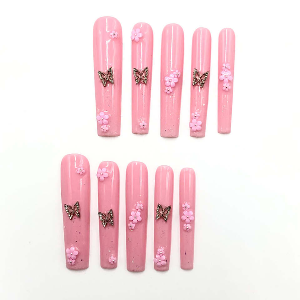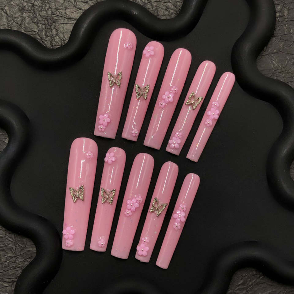Luxury Long Coffin Pink Chic Aura Press-On Nail Set