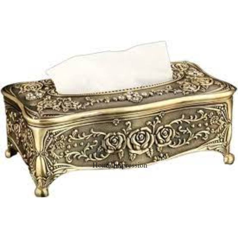 Luxury Look Aluminum Casted Gold Plated Vintage Designer Tissue Paper Holder and Box Wedding Table Centerpiece Decorations