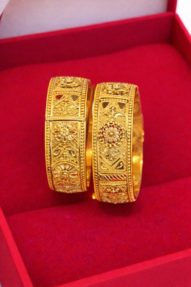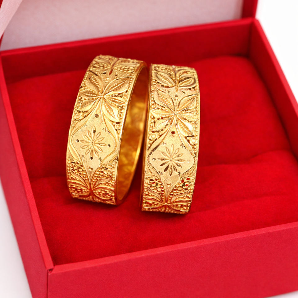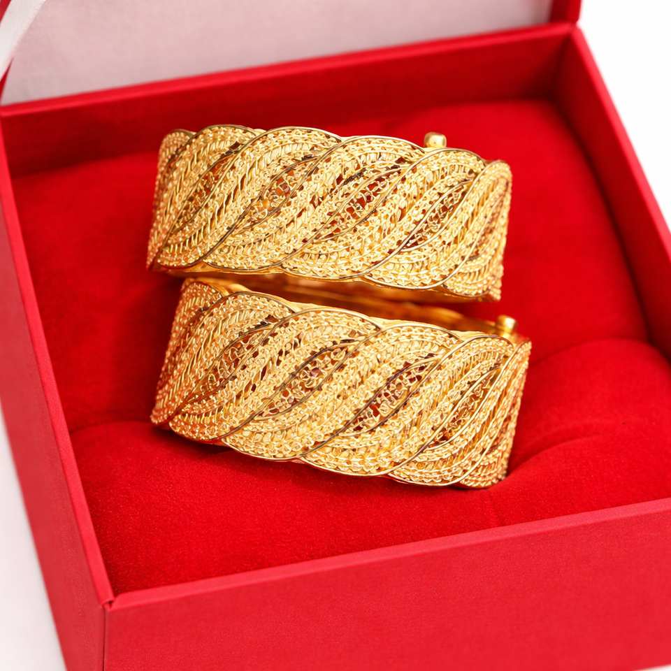 กำไลข้อมือทองชุบ 24K ประดับเพชรซิร์คอน ดีไซน์ดอกไม้เก๋ไก๋ ลวดลายฉลุประณีต จาก MOLL JEWELLERS สำหรับผู้หญิง