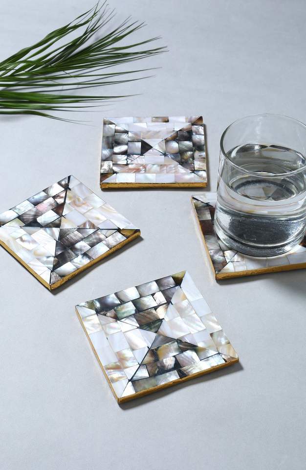 ที่รองแก้วไม้ถูพื้นหรูหราที่สร้างขึ้นด้วยศิลปะแม่ของไข่มุกให้รายละเอียดพื้นผิวที่สวยงามสำหรับการตกแต่งบ้านใช้