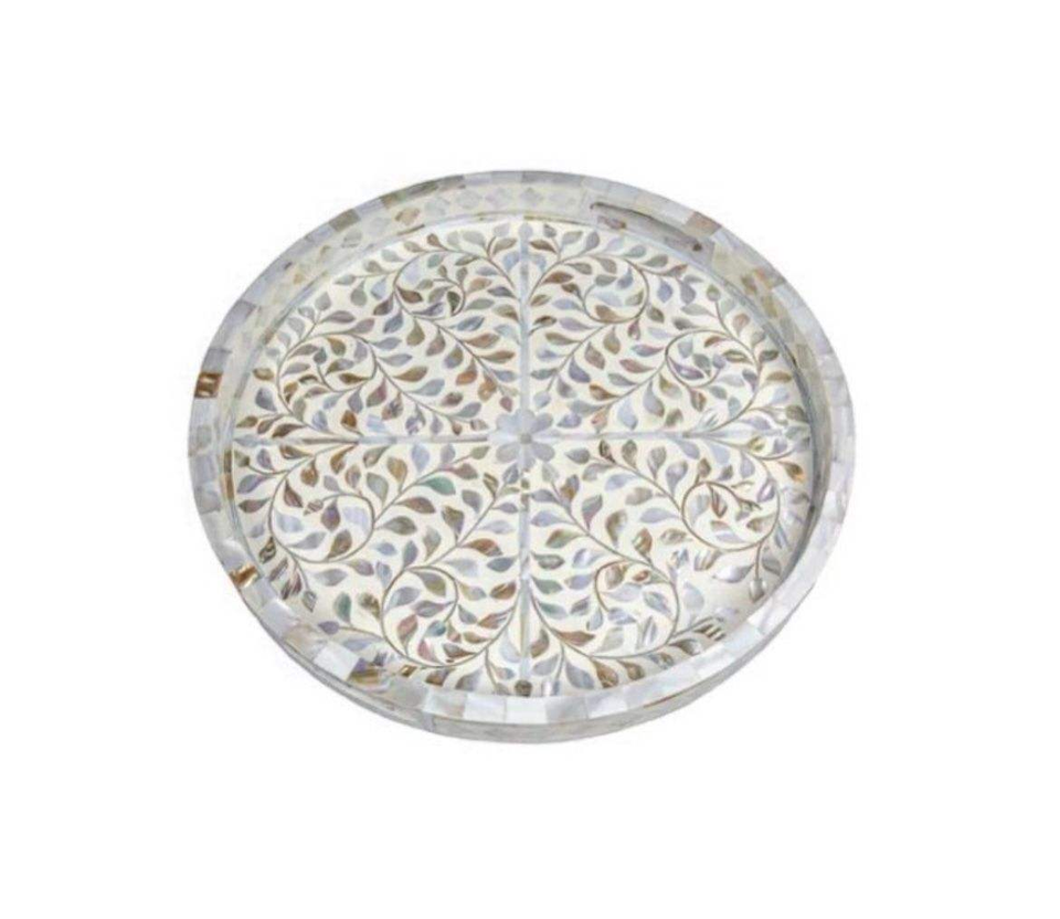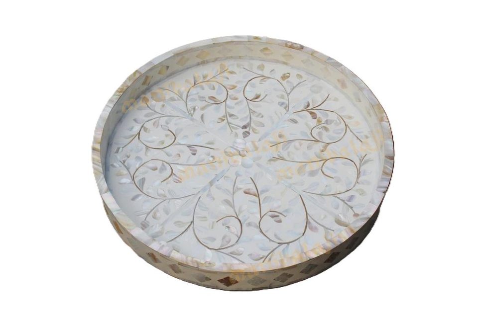 ถาดเสิร์ฟหรูหราประดับมุก ถาดเรซิ่นสีขาวสำหรับเทศกาลอีดมูบารัค เหมาะสำหรับโอกาสพิเศษ รอมฎอน อีด งานแต่งงาน ของขวัญ ถาดเสิร์ฟ
