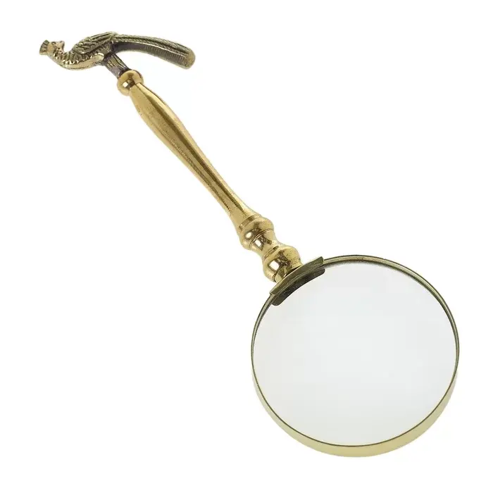 แว่นขยายหรูหราการออกแบบสูงและการตกแต่งชุบแก้วขยายสําหรับหนังสืออ่านในที่จับนกยูงทองเหลืองบริสุทธิ์