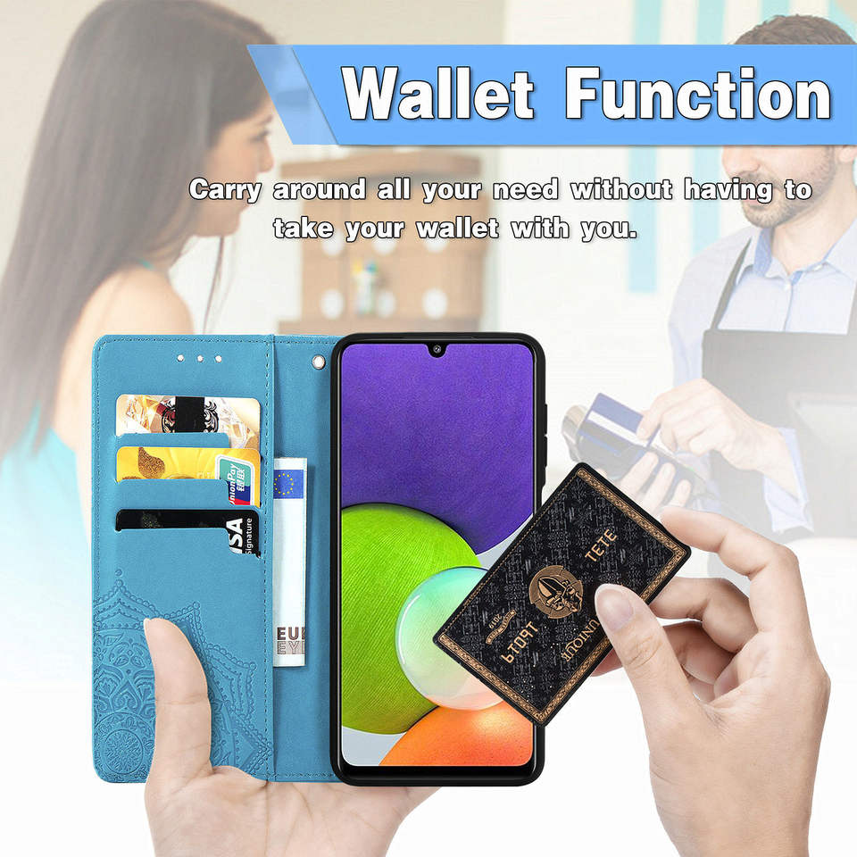 เคสโทรศัพท์หนัง PU ลายดอกไม้มันดาลาหรูหราเคสมือถือแบบกระเป๋าสตางค์สำหรับ Samsung Galaxy A 50 51 52 53 55 71 73 4G 5g