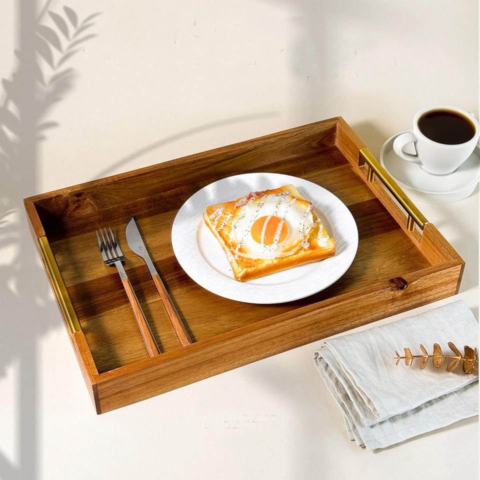 ชื่อผลิตภัณฑ์:ถาดเสิร์ฟไม้พร้อมที่จับเหล็กชุด L 3ชิ้น