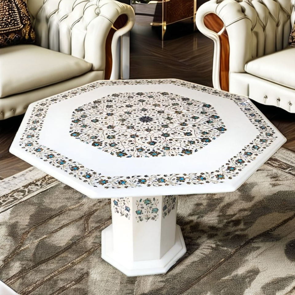 โต๊ะกาแฟหินอ่อนพร้อมงานฝังวัสดุ