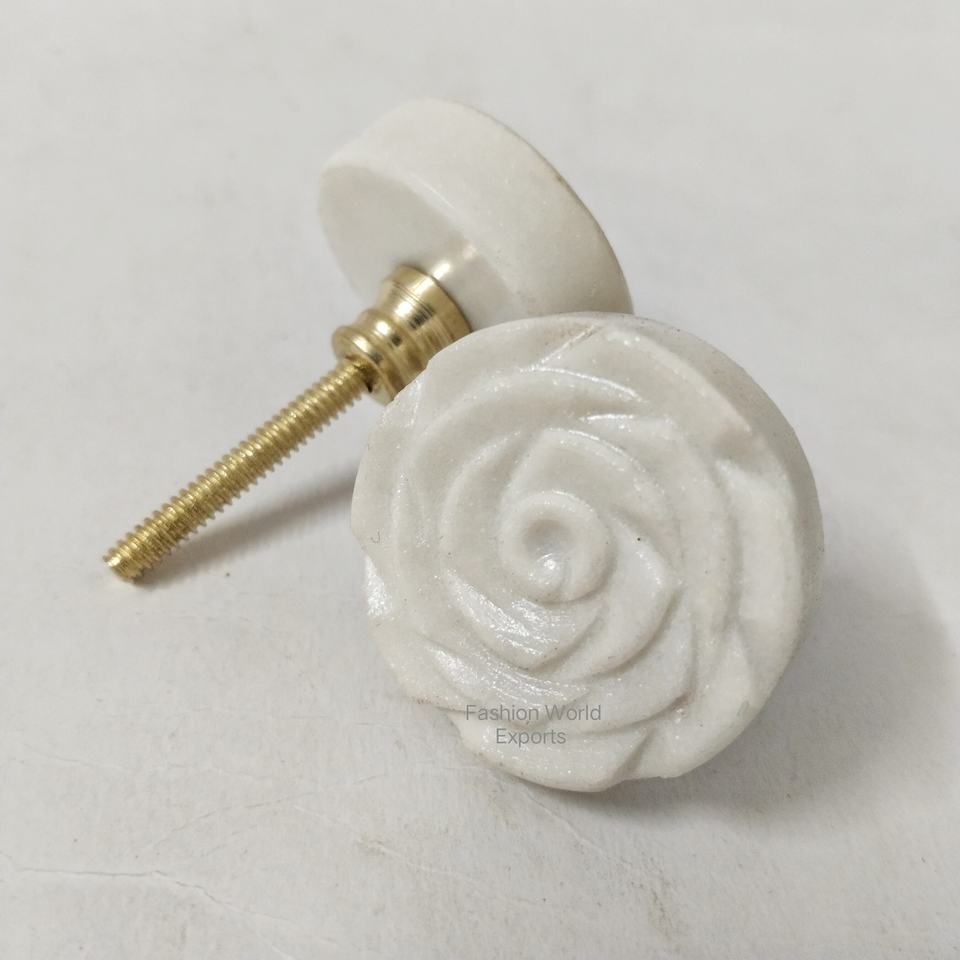 ลูกบิดลิ้นชักหินอ่อนสุดหรูลูกบิดตู้หินสีขาวธรรมชาติแบบดึงสลักลายกุหลาบที่ซับซ้อนลิ้นชักหินโมเดิร์นลูกบิดสำหรับตกแต่งแบบปรับได้