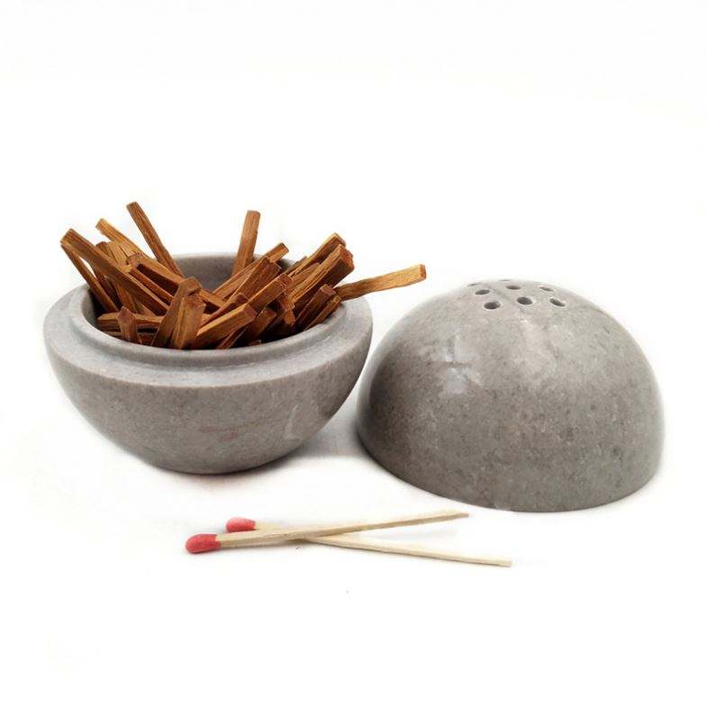 เตาเผากำยานหินอ่อนทรงกลม ACASA ARTO รุ่นหรูหรา สำหรับพระพุทธรูป รอมฎอน อาหรับ โยคะ พร้อมที่วางน้ำมันหอมระเหย หินธรรมชาติ ขนาด 10x10 ซม. สำหรับการทำสมาธิ