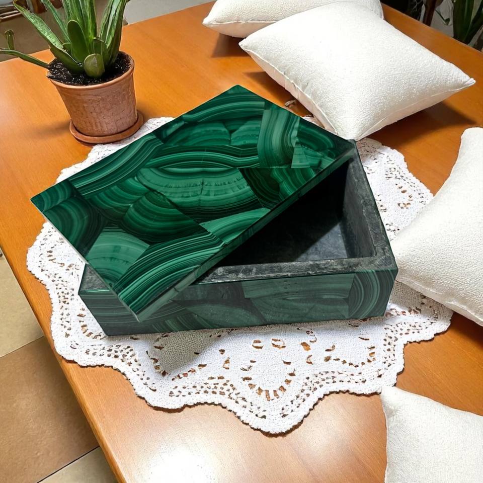 กล่องเครื่องประดับหินอ่อนสุดหรูจัดระเบียบด้วยหินมาลาไคท์มือจับทองเหลืองและฝาปิดของขวัญของผู้หญิงที่เก็บงานฝีมือหิน