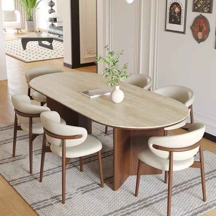 โต๊ะรับประทานอาหารทรงวงรีหินอ่อนหรูหรา โต๊ะครัวฐานไม้วอลนัททรงโมเดิร์น โต๊ะประชุมขนาดใหญ่สำหรับ 8-10 คน สำหรับใช้ในบ้าน