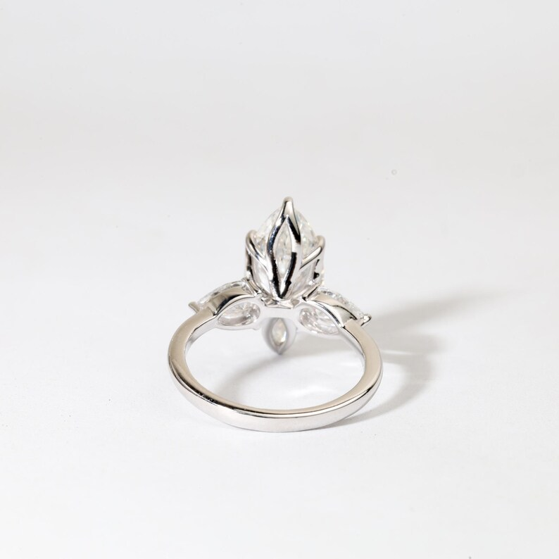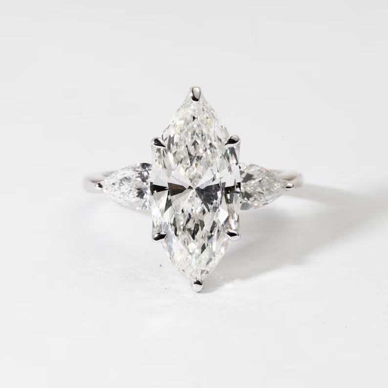 แหวนหมั้นเพชรทรงมาร์คีส์สังเคราะห์สามเม็ด ดีไซน์อาร์ตเดโค ทองคำแท้ 14K สำหรับงานแต่งงานหรือเป็นของแทนใจ